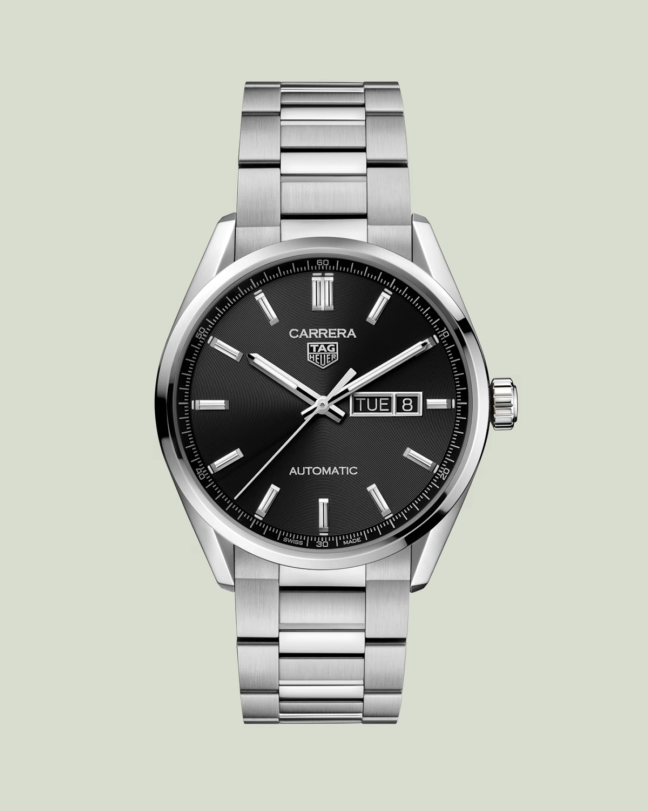 Swiss luxury watch manufacturer TAG Heuer first released the Carrera in 1963, and it's been the brand's icon ever since. Designed by Jack Heuer and exuding easy-going elegance, the TAG Heuer Carrera is a classic timepiece. The black azurage dial is extremely practical thanks to the clear day-date display, while a steel H-shape bracelet has been re-designed for greater comfort.