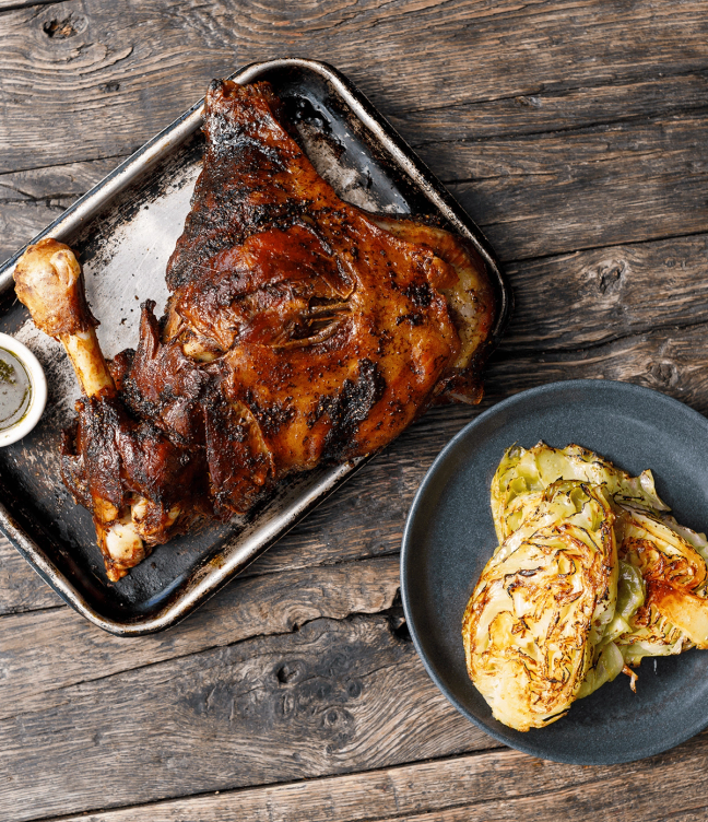 Smoked lamb shoulder with charred hispi cabbage, courtesy of David Carter (chef and founder of Smokestak)
