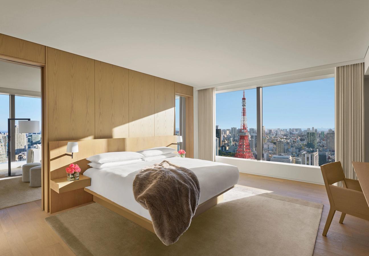 The Tokyo Edition, Toranomon, Tokyo, Japan, It’s really easy to love this outpost of Edition – the clean, sleek Ian Schrager aesthetic is all there, of course, with guest rooms awash with a naturalistic palette (white stained oak features heavily) and a pared-down configuration; meanwhile, the whole accommodation is anchored by the statement lobby, where there’s a spirited scene, postcard views of Tokyo Tower, and a forest of 500 plants, trees and shrubs that create that much coveted oasis-in-a-city quality. The private pool area (book in advance) is a lovely slice of blue water, appearing like a render so pristine is its appearance; the fitness centre, replete with Technogym equipment, is also one of the city’s best. In the mornings, plump for the Japanese breakfast (grilled fish fillet, steamed rice, simmered vegetables, miso soup) and request a seat by the window.
