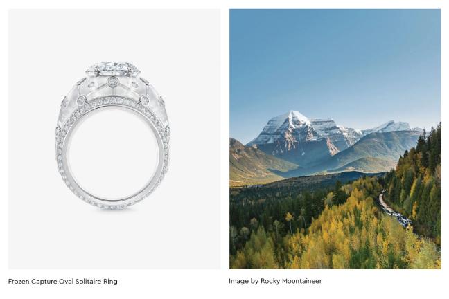 Other romantic ideas are a taking a scenic railway journey through the Canadian Rockies - “book a vintage private train car and propose as you pass majestic mountain vistas,” James advises; proposing in Iceland under the Northern Lights with the truly stunning, one-of-a-kind Frozen Capture solitaire ring; or having a private dinner at the Amber Fort in Jaipur, India, on a candlelit terrace overlooking the pink city at night, where the Aura fancy purplish pink cushion-cut diamond will complement the location exquisitely.