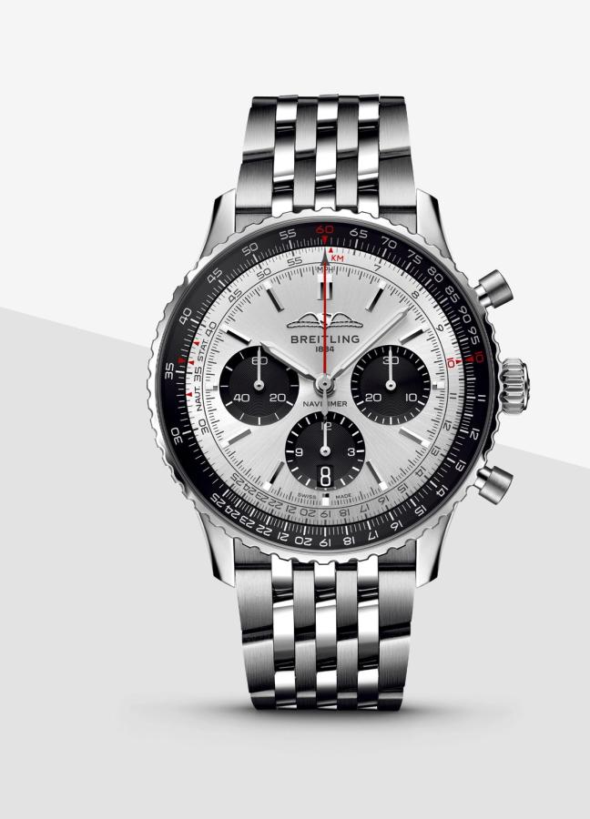 The updated Breitling Navitimer, for 2022, is known officially as the Navitimer B01 Chronograph and comes in three case sizes with a variety of different dial options, many of which have never been offered in a Navitimer before. On the dial, we see a return to the AOPA Breitling 'wings' logo, which has been used on some retro-remake models, but no standard collection pieces, until now.