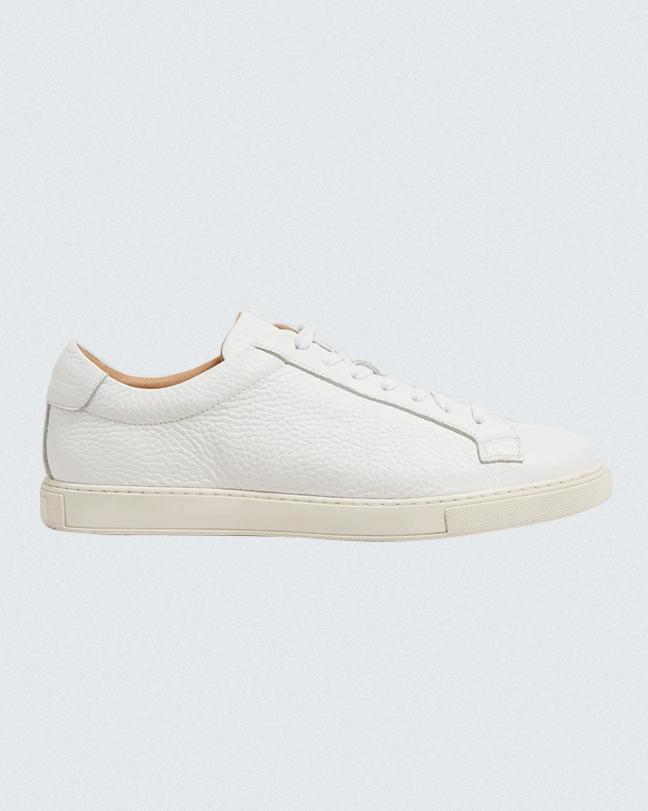 London-based label Thom Sweeney, aside from very nice suits, also does excellent separates. These white trainers, for example, are exemplary of the brand's dedication to craftsmanship and are cut from a pebble grain, hard-wearing leather. Wear with trainers and a white slubby tee for a timeless, casual look.