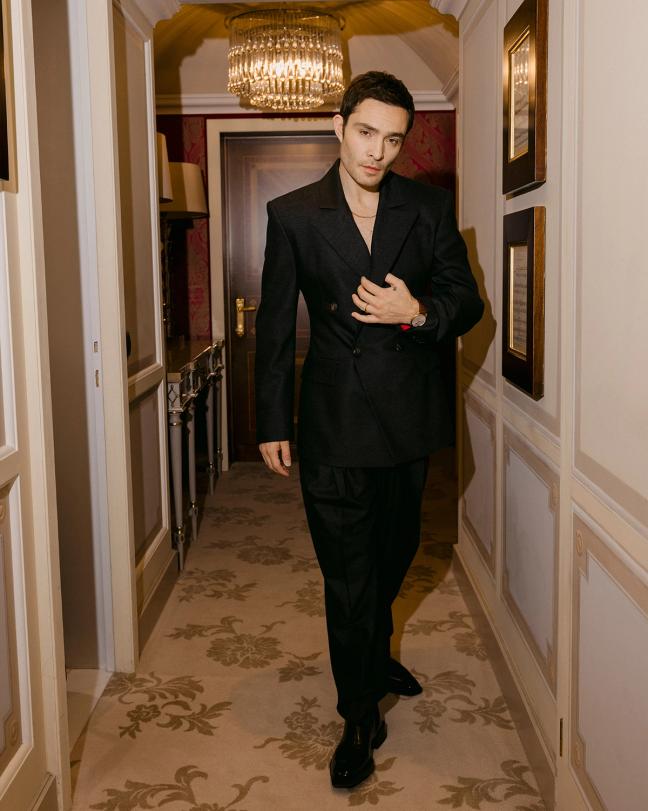 Westwick admits that he has had his own illustrious journey with his personal style. While he was never as dandified as Bass, over the years he has trod the waters of many different walks of life. "In my late teens and early twenties I was a little rebellious," he tells me. "It’s so cliché, but it was the height of Indie sleaze and I was inspired by that and I had all these stupid junkie idols. It took a while to get out of that. I was all skinny jeans with a rip in them, à la Pete Doherty." Following that he tried his hand at the whole über cool Los Angeles downtime actor thing you see the likes of Austin Butler finessing right now. "I was in LA and I tried out the whole sweatpants thing that you see a lot of, but I just looked like an unemployed actor."