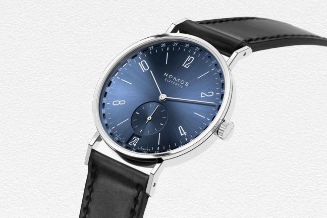 With an immense amount of detail contained in the slim case and across the 37.5mm dial, the Tangente 2date is the first hand-wound model from NOMOS to boast a dual date display. Two markers frame the current day on the NOMOS ring date, in addition to a more traditional date window at the 6 o'clock position. Outside of the date function, the Tangente 2date showcases a polished smooth blue dial, a rhodium-plated second hand and an in-house calibre that allows for up to 52 hours of power reserve.
