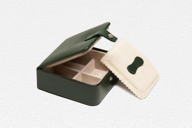 After the success of its ‘Capra’ Collection, Ettinger has launched a contrasting, two-tone sister collection called ‘Capra Ecru’. Our pick of the new elegant goat leather pieces is this; a medium-sized, endlessly practical stud box in a handsome forest green. Inside, you’ll find a lining of supple ecru suede.