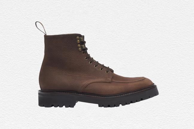Northamptonshire-based Cheaney's Brixton boots are inspired by the timeless design of apron work boots, which carried an apron stitch around the top of the shoe. These feature supple brown nubuck grain and robust Vibram Mirto rubber soles, providing traction, but never skimping on style.