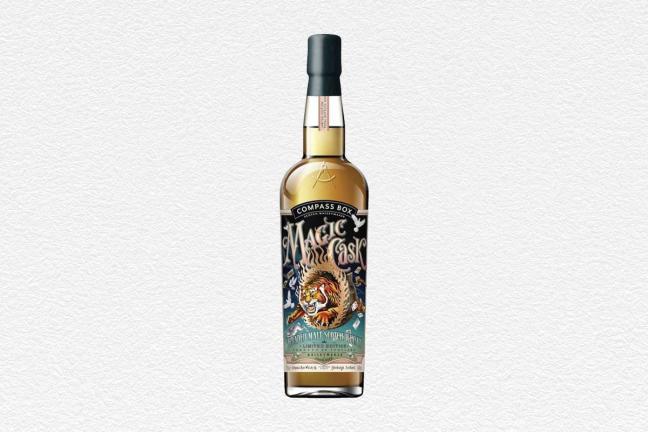 Of course, staying warm this winter isn’t always about layering. Sometimes it pays to cosy up from the inside out. To that — more spirited — end, allow us to pour you a dram or three of Compass Box’s Magic Cask blended malt. Matured in Oloroso sherry-seasoned oak, and fizzing with wintry flavours of marmalade, plum and chai tea spices, this is a whisky as fiery and exciting as its own sensational label.