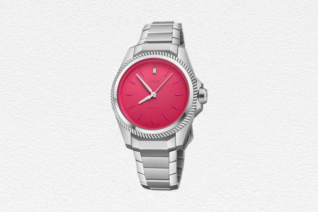 Following on from a collaboration with Kermit the Frog, Oris is continuing its joyful collaboration with The Muppets. The ProPilot X Miss Piggy Edition features a 34 mm case, a hot pink dial and a baguette-cut lab-grown diamond at 12 o’clock. Think it's not very Miss Piggy so far? On the back there's a spyhole revealing Miss Piggy’s glamorous portrait.