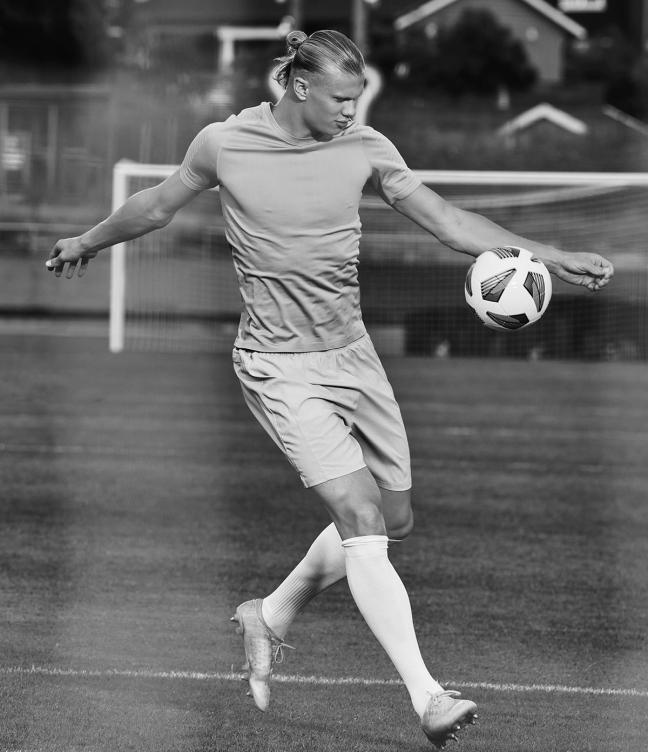 “Life is short and a football career is short, so I’m going out there to enjoy as much as I can!” says Haaland, post-match. It’s been a stellar period for him, after all, having knocked down records in his first few months in the Premier League; proving to be the fatal blow in Pep Guardiola’s death-by-a-thousand-cuts philosophy of play; and, recently, penning an ambassadorial role with watchmaker Breitling, the type of deal that turns footballers into global, bankable icons and one that is suitable, given the striker’s manipulation of time: his split-second movements, G-force speed, his apparent ability to see things in slow motion.