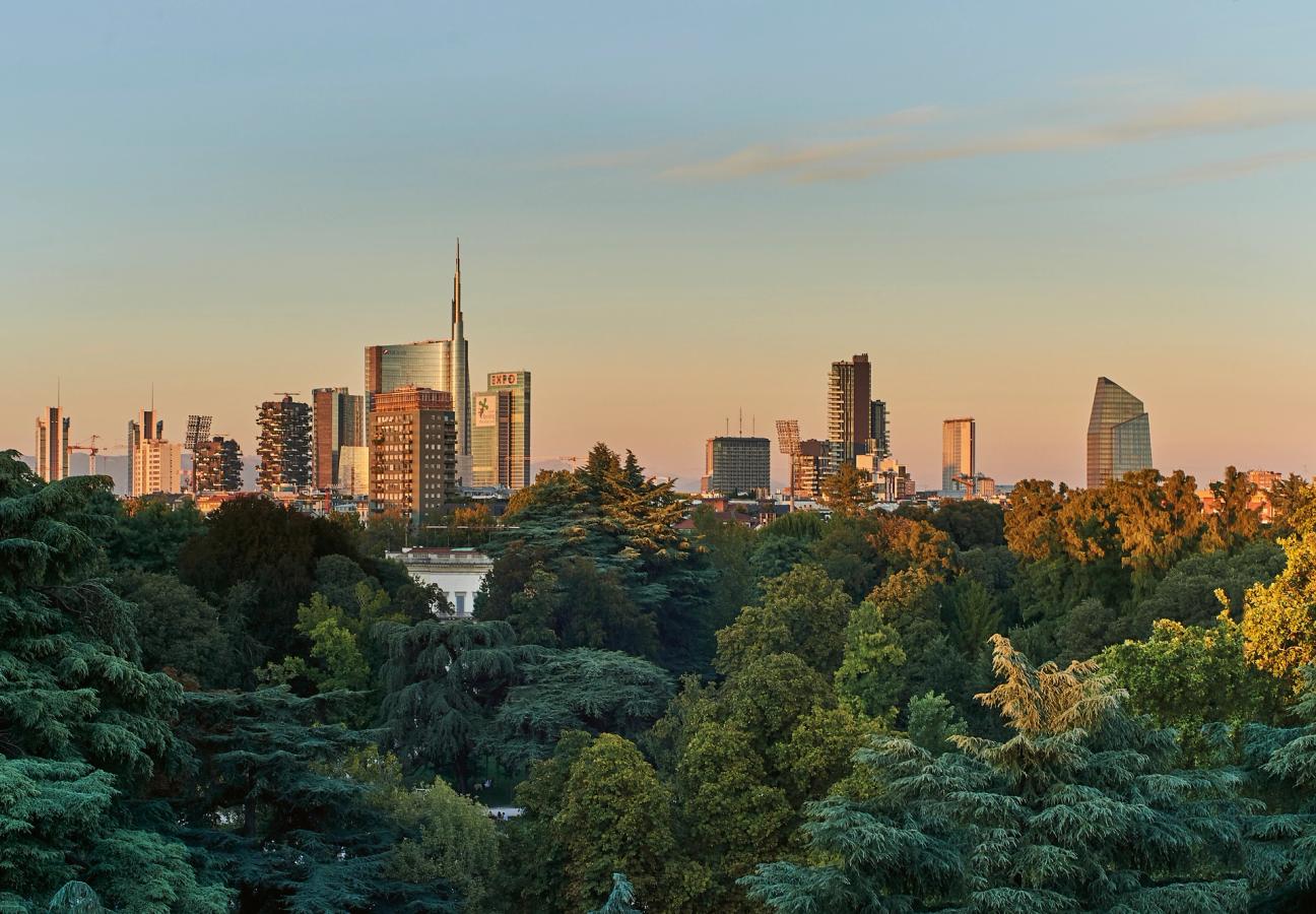 Milan's Porta Nuova District skyline with priapic Samsung Diamond tower and “Bosco Verticale” building