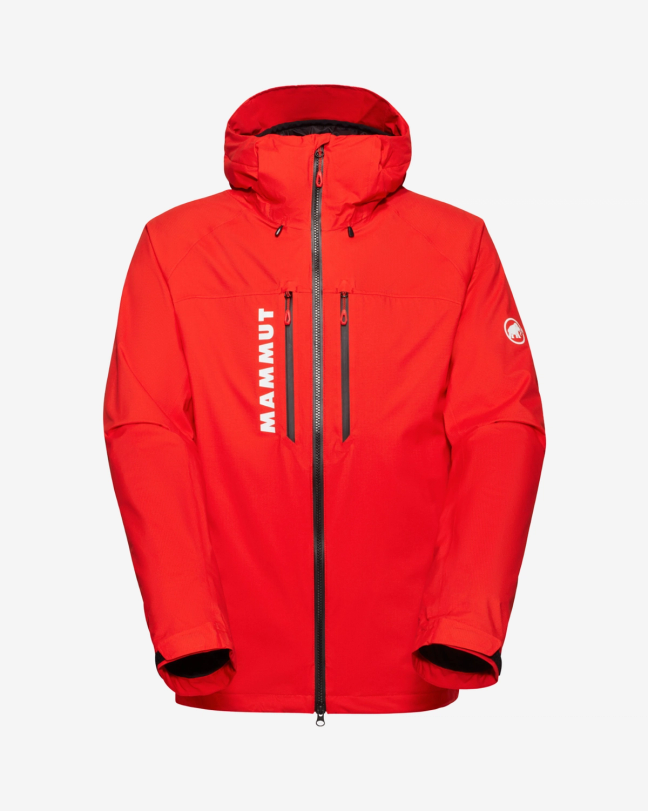 Filled with 40g/m2 ECOLoft Flex SR insulation, Mammut's hooded jacket does the job of keeping the heat in when you're in low temperatures. Cut from regenerated nylon, it is water resistant, while its streamlined shape has been engineered for skiing.