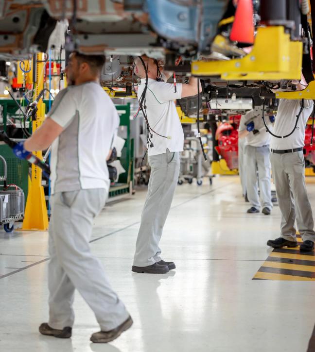 By the side of the main assembly line, other annexes and production areas are also ticking over. Industrial ovens sit hot, baking wiring looms to soften the wires and make them easier to thread eight miles of electricals through the cars. Airbags are also carefully transported in bright yellow cages, given wide berths by the workers to ensure no-one accidentally sets them off.