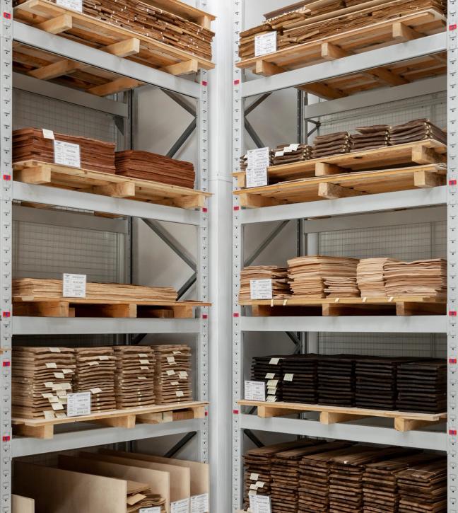That process, he goes on to explain, begins with the root or ‘burr’ of the tree. Woods from all over the world are boiled for four days in a facility in Valencia, before being sharpened like a pencil into 0.6mm sheets. These sheets are then stored in a high-shelved, cold room at the Crewe facility — which allegedly holds £700,000 worth of wood at any one time.