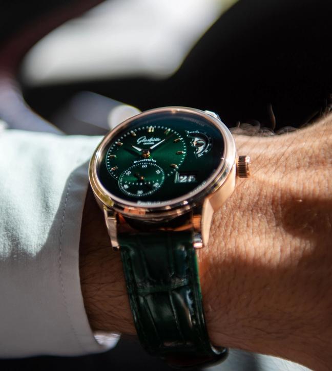 It has a three-quarter plate with stripe finish. There’s a balance bridge engraved by hand. It even features Glashütte Original’s signature duplex swan-neck fine adjustment. And all of these mechanical masterstrokes combined create a watch worthy not only of celebration — but also of elevation in a bold new colour. Just ‘the same thing in green’? Hardly.
