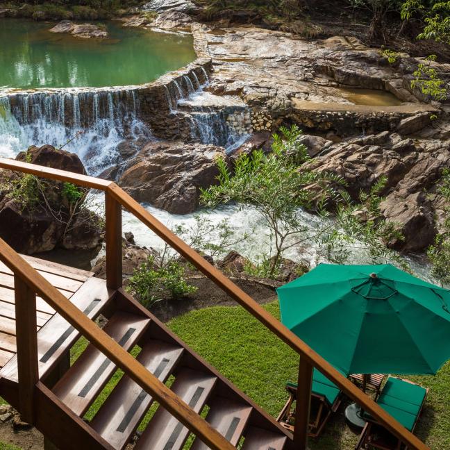 Nestled away in a remote pocket of the Maya Mountains, Blancaneaux Lodge is a 20-room luxury hideaway where waterfalls tumble into turquoise pools above a jungle canopy.