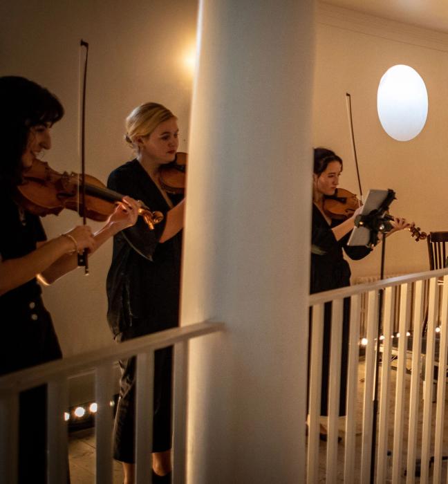 The evening began with a Champagne reception. And music, the central, unifying theme for the event was in full sophisticated swing before even the first sip — thanks to a masterful string ensemble on the atrium’s mezzanine level. But, before long, guests were ushered into a different room in Old Sessions House; one lined with chairs and sofas. We were given silk blindfolds and instructed to surrender wholly to this latest Krug encounter.