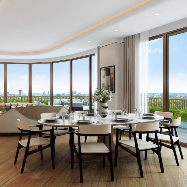 The luxury accommodation spans nine floors, all of which feature dizzying ceiling heights and floor-to-ceiling glazing opening onto individual private terraces. As views go, these vistas can’t really be beaten; residents will have a front row view of Hyde Park, and can gaze out at the London skyline every morning with their first mug of coffee, imprinting the London Eye on many a retina.