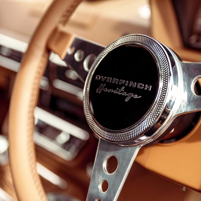And you’ll be controlling it from those quilted, comfortable seats — using a bespoke ‘Mota-Lita’ classic steering wheel in machined metal. Wrapped in tan leather and bearing Overfinch’s ‘Heritage’ logo, it’s a handsome, dependable focal point for the cabin.