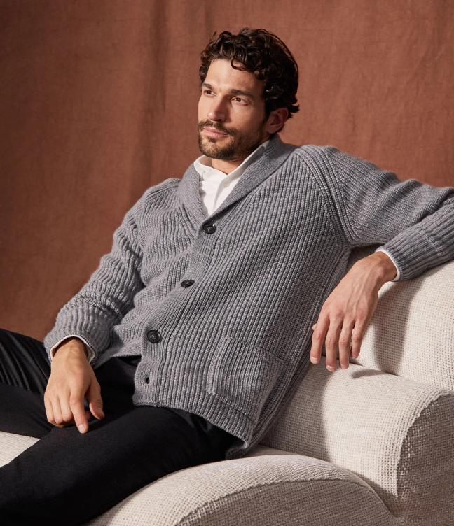 The ‘Dolomiti Grey’ chunky-knit cashmere cardigan, a signature piece of the season, is a great point from which to start. Crafted from fine yarns from Cariaggi – a factory whose 65 years of spinning experience creates a material that guarantees supreme softness and durability – it is a reliable staple to pack away for the après-ski. The piece can also either be dressed up with a white brushed-cotton shirt – perfect to wear for festive afterwork drinks – or made casual when worn over a plain T-Shirt. We also appreciate the classic shawl collar as well as the ribbed handle, which makes a subtle textural statement, one that’s best anchored by neutral items, such as these pleated wool trousers in charcoal grey.