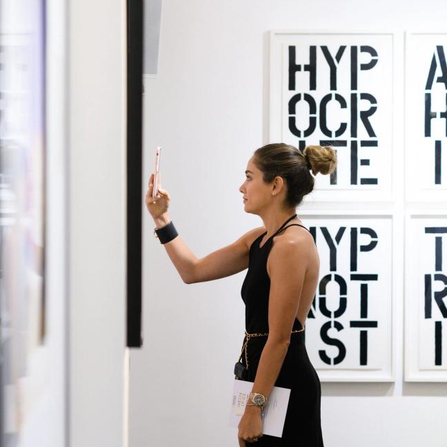 The show explores the symbiotic relationship between the written word and visual world, with over 40 evocative works highlighting the interplay between language and the power of words in modern society.
