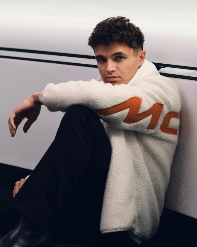 Meanwhile a leather biker jacket is a standout piece, sported by Norris in the campaign and arriving in a cream colourway. Each piece in the McLaren | Reiss collection, which has been carefully curated for everydaywear, has been designed by Reiss' in-house team in Britain.