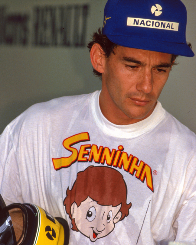 Three-time Formula One World Champion Ayrton Senna is widely regarded as one of the greatest drivers – and dressers – to have graced the planet. His minimal ‘90s outfits – usually characterised by oversized logo tees (his own logo, of course), blue jeans and plain white sneakers – were just about always topped off with his iconic blue Nacional cap. If anyone could pull off a bank-branded accessory, it was Senna.
