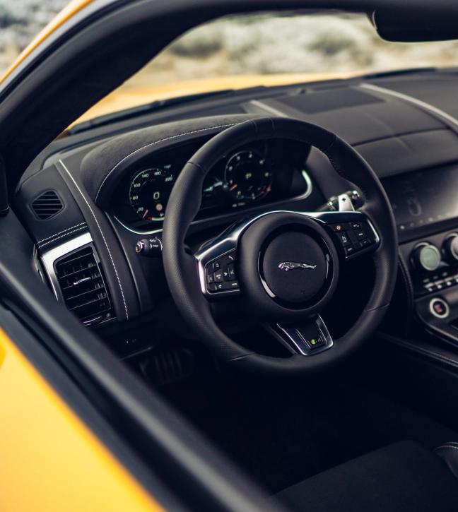 That’s not to say that this is a quiet car. The distinctive crackle and pop on the overrun — a hallmark of the F-Type — remains, and the supercharged 5.0 litre V8 in the R Coupé will roar when you want it to. It’s got a maximum speed of 177mph, can reach 0-60mph in just 4.4 seconds and has earned its place at the top of the new range (you’ve also got a P300 Convertible, P300 First Edition Coupé and P450 R-Dynamic Convertible to choose from).
