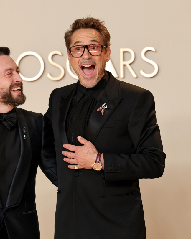 Robert Downey Jr, who presented at the awards, opted for an Omega Seamaster Aqua Terra 150M 18K Sedna Gold and Rubies. A timepiece of quality and craft, it is embedded with glistening rubies.