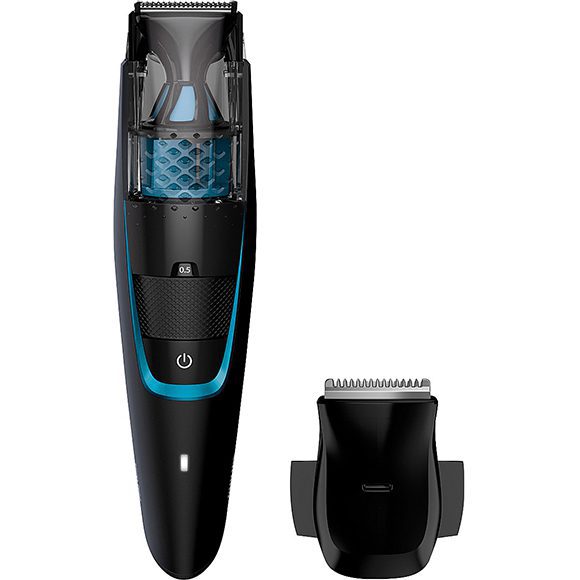 We’d recommend the Series 7000 vacuum beard trimmer by Philips – a reliable tool that’ll do the job and never nick you. And if you’re running late, this no-mess trimmer catches the hair you trim, saving valuable time.