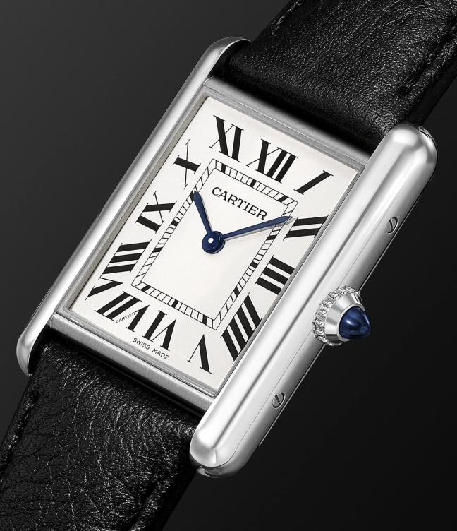 To look at it, you wouldn’t know. It has the model’s instantly recognisable squared-off shape, the roman numerals, the sword hands and the cabochon-cut sapphire sticking out of the crown. But inside, it beats with a new solar-powered Cartier quartz movement that the brand guarantees will work for at least 16 years. The neatest part of the trick? It’s those bold black numerals that absorb the light.