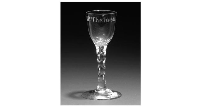 An engraved Cycle Club facet stem wine glass engraved for Richard Price-Thelwall, circa 1770.