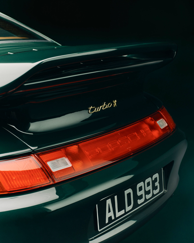 But this collaborative car isn't just a visual delight, but actually comes with several significant technical upgrades added too. These include the installation of the exhaust and front splitter and ‘whale tail’ rear wing from the 993 Turbo S – this will enhance the car's dynamic performance. 18-inch Porsche Turbo Twist Rims painted in matching Mulberry Green with a gold accent and fitted with Michelin Pilot Sport PS2 tyres, make this a fully functioning ride.