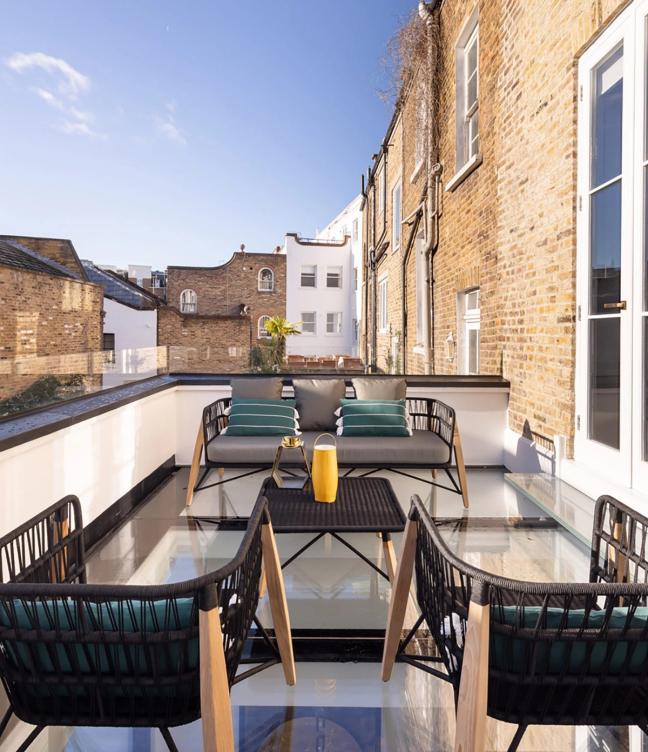 And the rest of the property is just as appetising. Beyond the dining space — and behind similar glass panels — you’ll find an immaculate garden that epitomises the chic, sleek outdoor spaces of this unique townhouse.