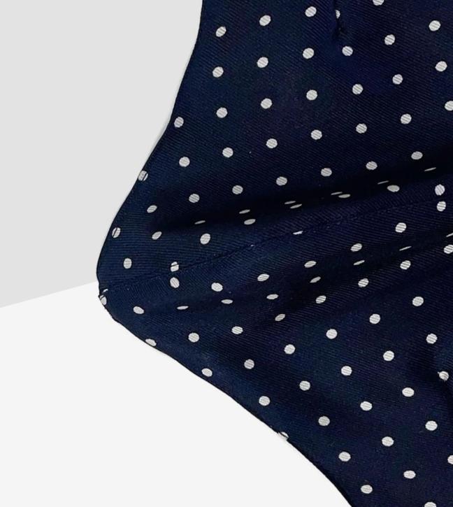 A couple of honorary mentions now; beginning with Jermyn Street’s Emma Willis. A sartorial St. James’s staple, Emma Willis is offering a selection of face coverings — our favourite being this navy and white spot silk mask. Created using two layers of fabric, it can be adorned with either an Emma Willis label or your hand-embroidered initials. Talk about bespoke.