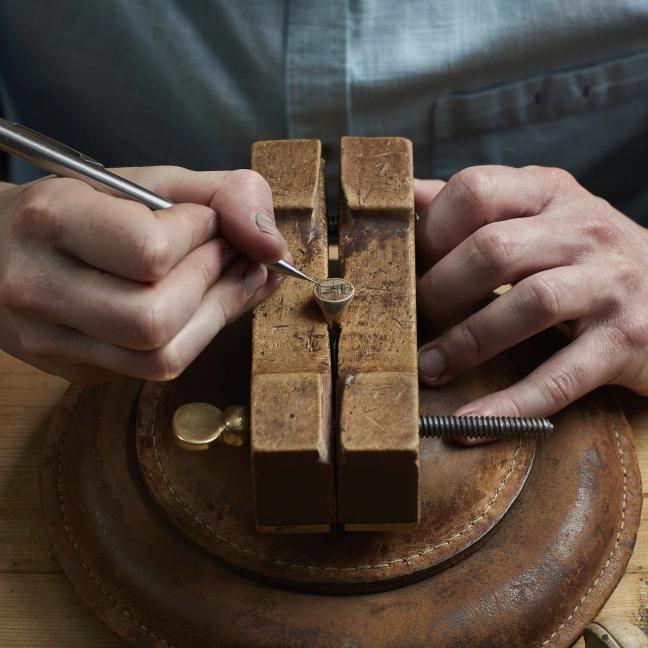 Once the design is finalised, the ring is forged and hallmarked to ensure the quality of the gold. The rough cut is delivered to Rebus, and the engravers set to work.