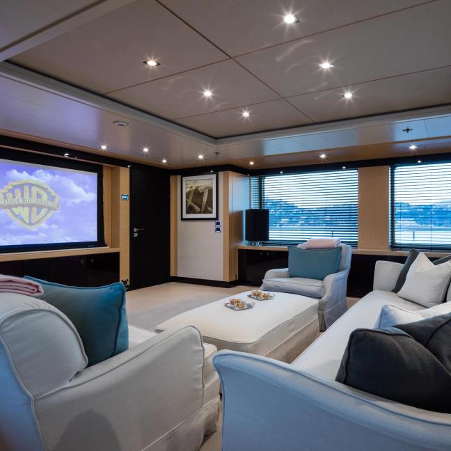 Throughout the vessel, there are also a range of plush spaces to relax and get cosy — including the Bridge deck salon, which comes fully fitted with a projector and cinema screen. All this, alongside Grace’s enviable array of water sports equipment, and space for a crew of 13, render her one of the most desirable yachts on the waves right now.