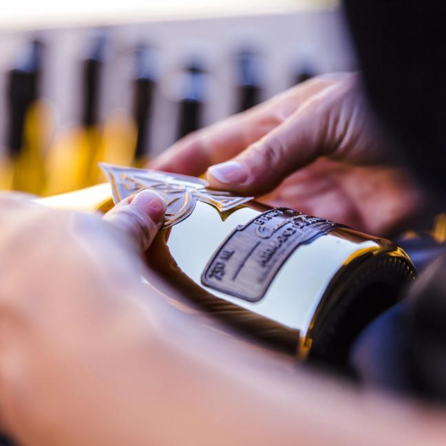 It’s an almost eerie place, but the glitter of the bottles gives off a look of buried treasure, like ingots stacked tens high against the wall. But, as we crunch across the gravel floors, the winemaker tells me that the attention to detail and exclusivity continues long after the wine has been made.