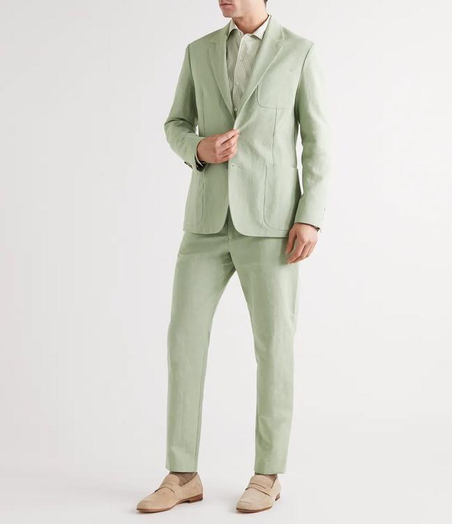 Let’s start with a statement; a green suit. From British menswear maverick Paul Smith, this Italian-made, patch-pocketed option will add a pop of verdant colour — but keeps things casual with notch lapels and a relaxed-but-tailored fit. Wear it to any European weddings you may be jetting off to this summer.