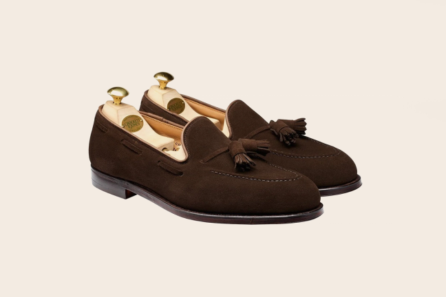 Built on a single leather sole and cut from the finest calf suede, this elegant Crockett & Jones loafer style is an open-stitched, waxed and stained shoe that can stand up to anything a modern man might kick its way.
