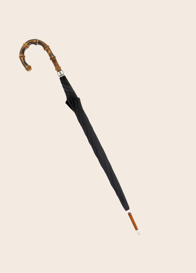 The ‘Whangee’ cane handle has become an indicator of strength, tradition and taste. Lightly scorched, the handle supports a cloth canopy sourced from Italy — and is stitched together here in dependably rainy Britain.