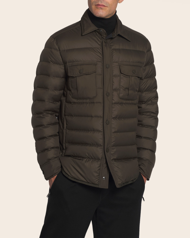 Functional outerwear need not skimp on style. In fact, this Italian-made goose down overshirt from Brioni is proof that practicality and elegance can make excellent bedfellows.