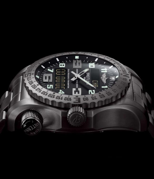 How does it do it? By housing a personal locator beacon (PLB) in its titanium case. If you find yourself stranded or in trouble, you must simply turn that thick additional crown — the wire antenna — and help will soon be on its welcome way.