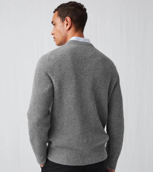 What should I buy? So many options; from slippers to sweatshirts, Parkas to puffers, duffles to denims. We’d have to stick with the basics, however — the brand’s simplest jumper, woven from 72% recycled cashmere.