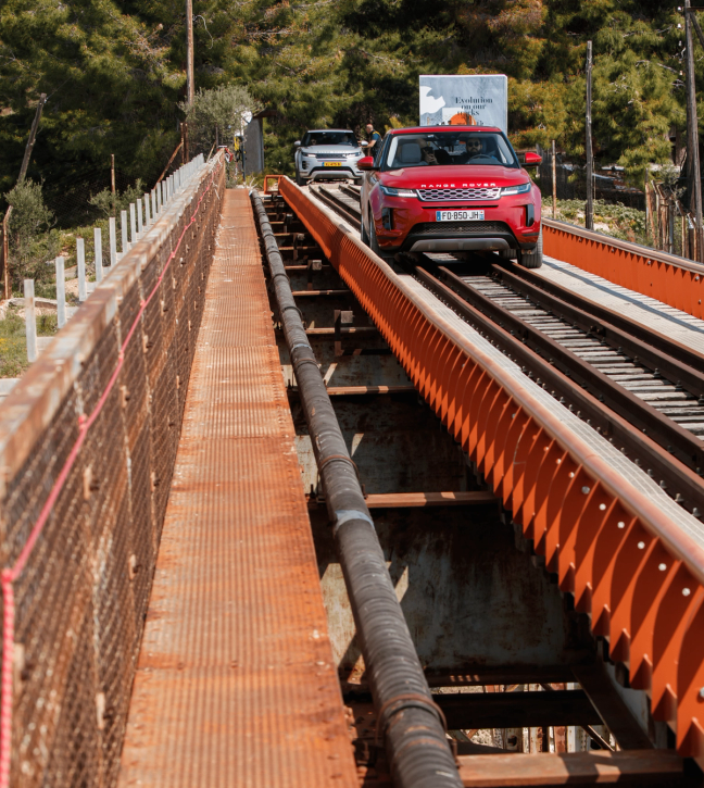 Not that I’m complaining. It’s quite the adventure, bypassing hand-drawn skull-and-crossbones warning signs and trundling across the Corinth Canal, 40 metres in the air. And, if I’m being honest, I do know why I’m here. It’s because, despite Range Rover knowing that their new Evoques won’t be crossing fords and scaling mountains any time soon, they want you to know that these feats are still well within the car’s four-wheel-drive, low-slung abilities.