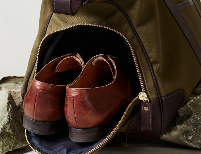There’s even a laptop sleeve, to accommodate the needs of contemporary customers — and the aforementioned waterproof shoe pocket helps ensure your belongings stay safe and separate from one another. And, just to keep things extra secure, that brass zip also comes with a lifetime guarantee — and will characteristically mellow and age with use. It’s the same with the leather trim, which will develop a patina to add to this weekender’s timeless design.